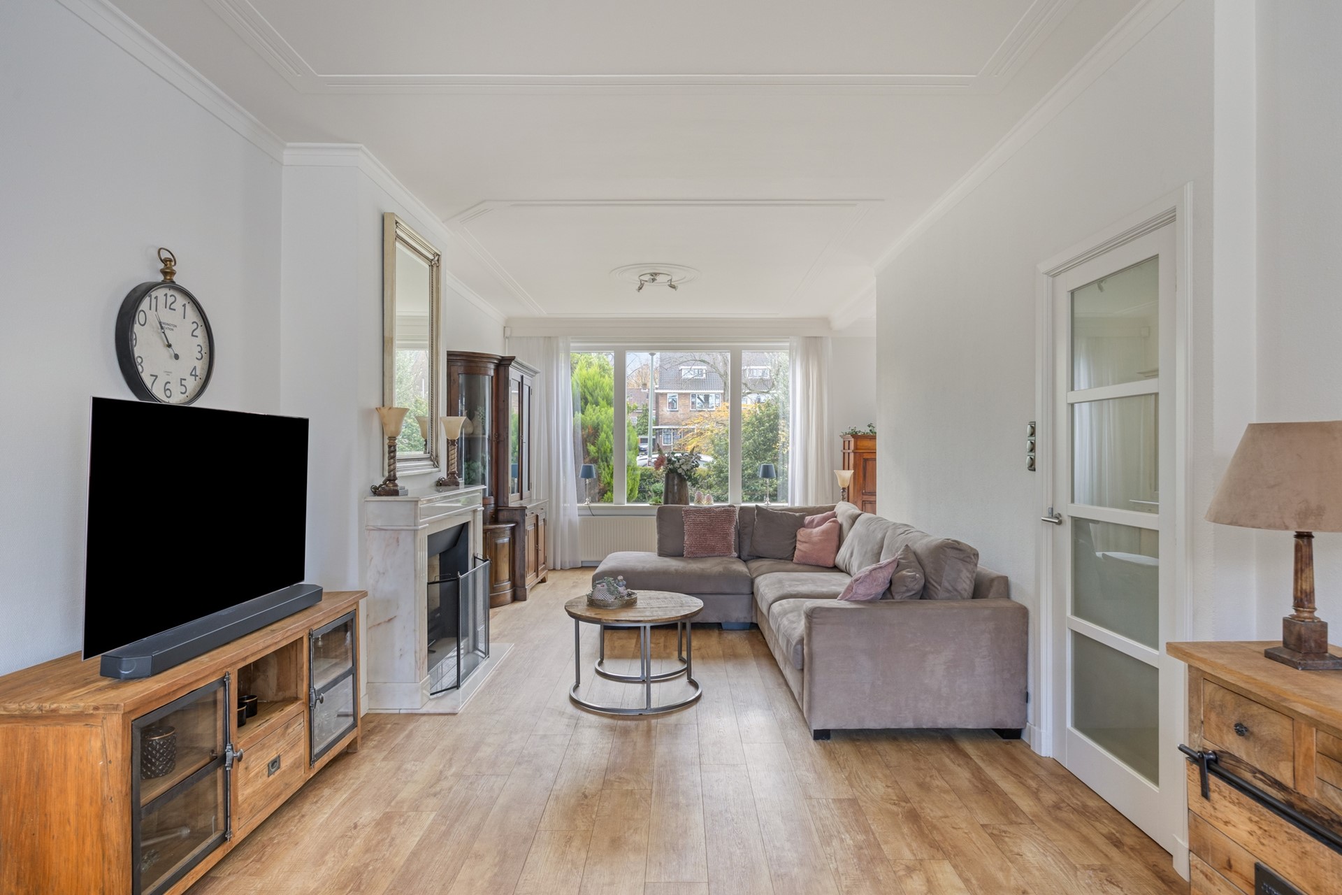 Bij binnenkomst valt direct de royale en lichte L-vormige woonkamer op. De grote ramen bieden uitzicht op de singel aan de voorzijde en zorgen voor veel lichtinval. De open haard vormt een sfeervol middelpunt en via dubbele openslaande deuren loopt u zo de achtertuin in.