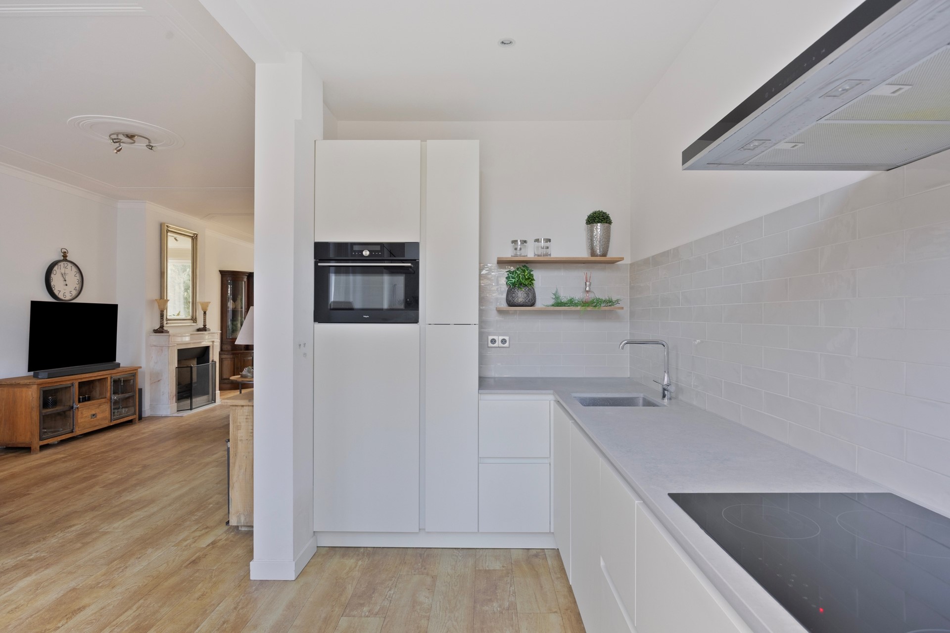 De luxe open keuken (2021) bevindt zich aan de tuinzijde en is uitgerust met o.a. een keramische kookplaat, vaatwasser, koelkast, oven en rvs-afzuigkap. Ook vanuit de keuken is er toegang tot de tuin.