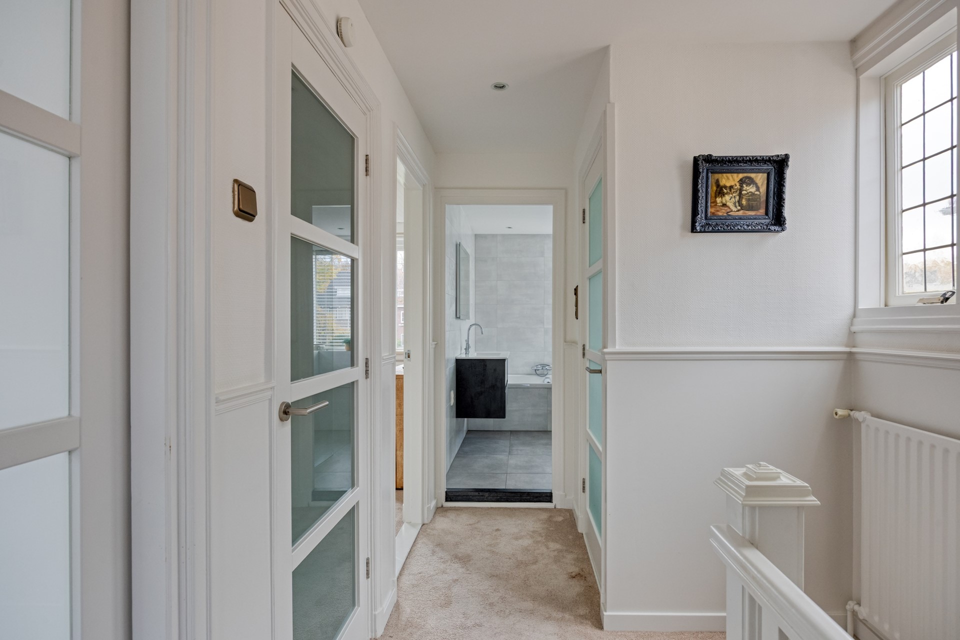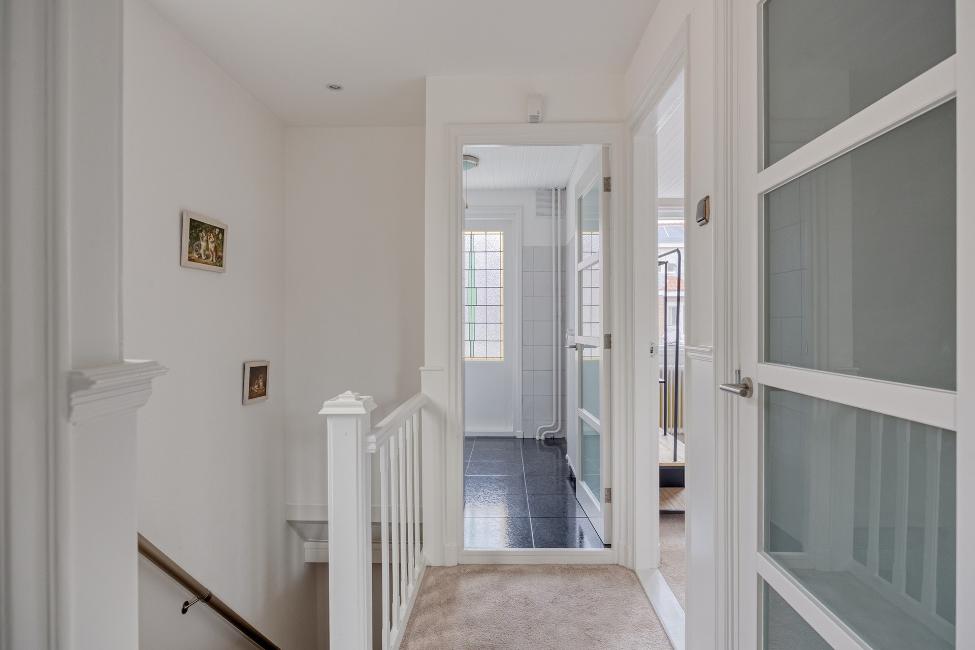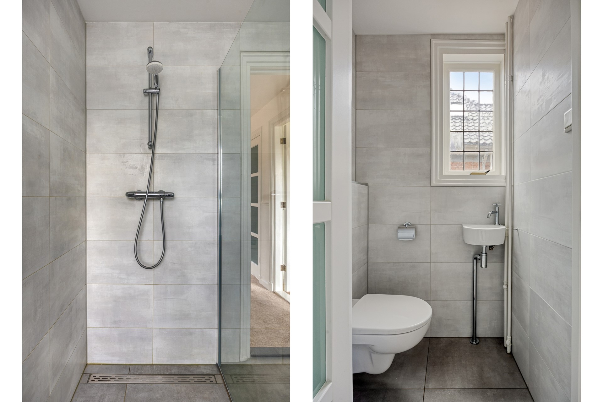 Op de eerste verdieping bevinden zich twee ruime slaapkamers, een moderne toiletruimte (2021), een luxe badkamer met inloopdouche, ligbad, wastafelmeubel en designradiator, en een praktische waskamer. De achterslaapkamer heeft directe toegang tot het balkon.